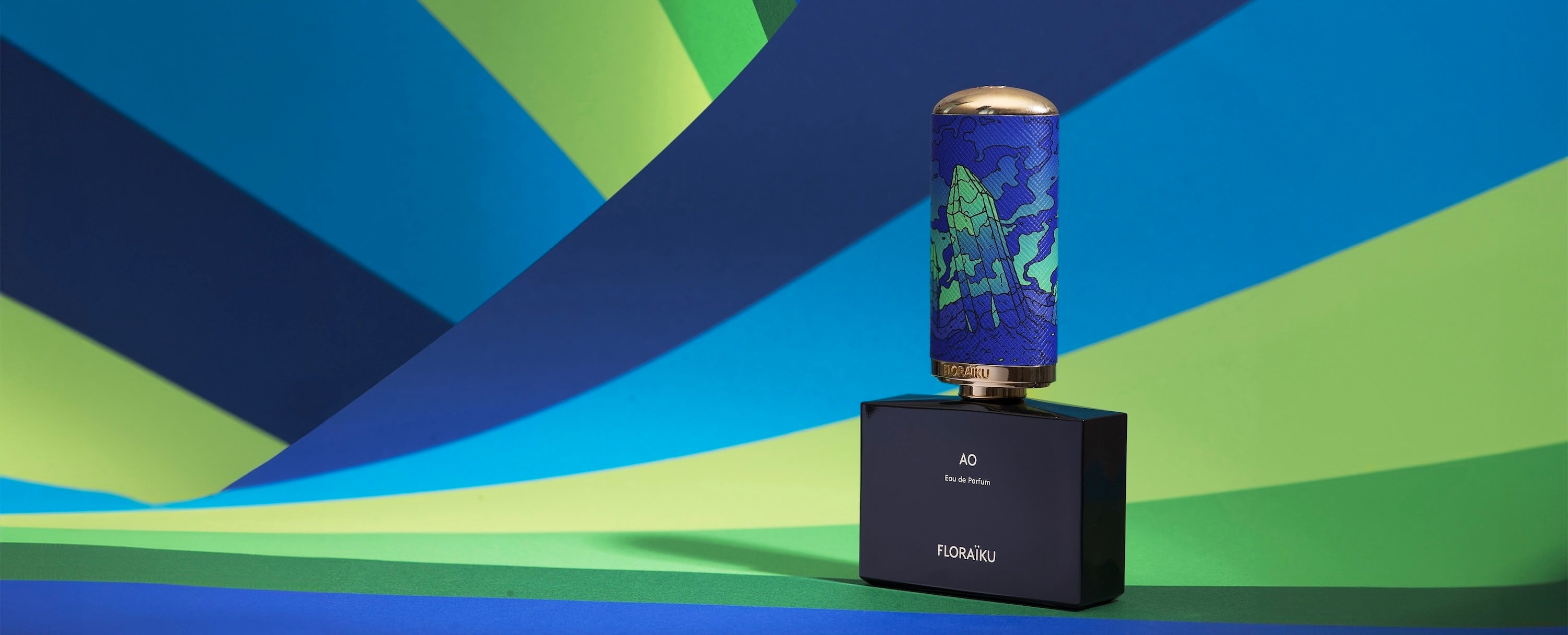 AO means in Japan a color between blue et green, a shade evolving. Exactly as gems can do, according to the light, and the purity of the stone. Here, they stand facetted like a fragrance, revealing a range of slight nuances.