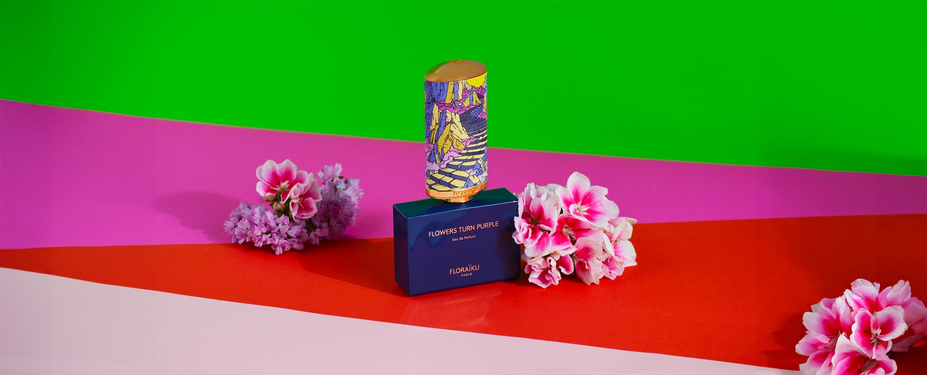 In Flowers Turn Purple, Basil oil, Lavender oil and Amber wood come together to create a fragrance with a green character, adding another shade in the floral collection.