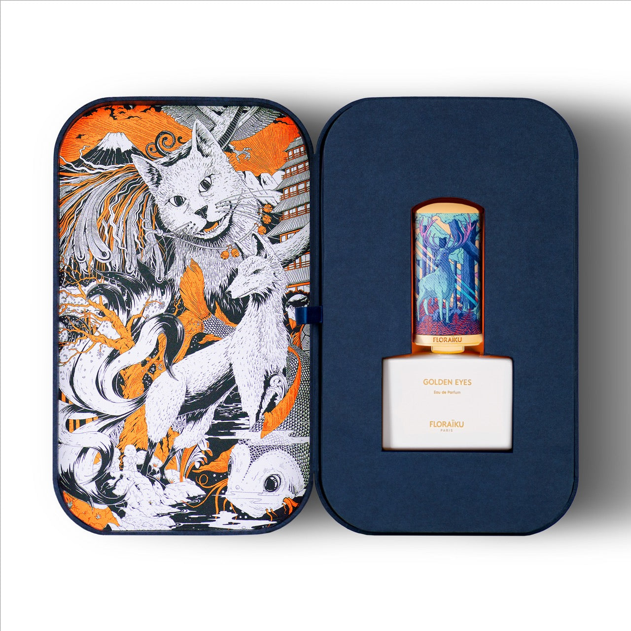 In your Bento Box Golden Eyes, discover your signature scent — and a precious surprise. Nestled within is a refined Travel Case, complete with a 10ml format, making it the perfect companion wherever you go.
