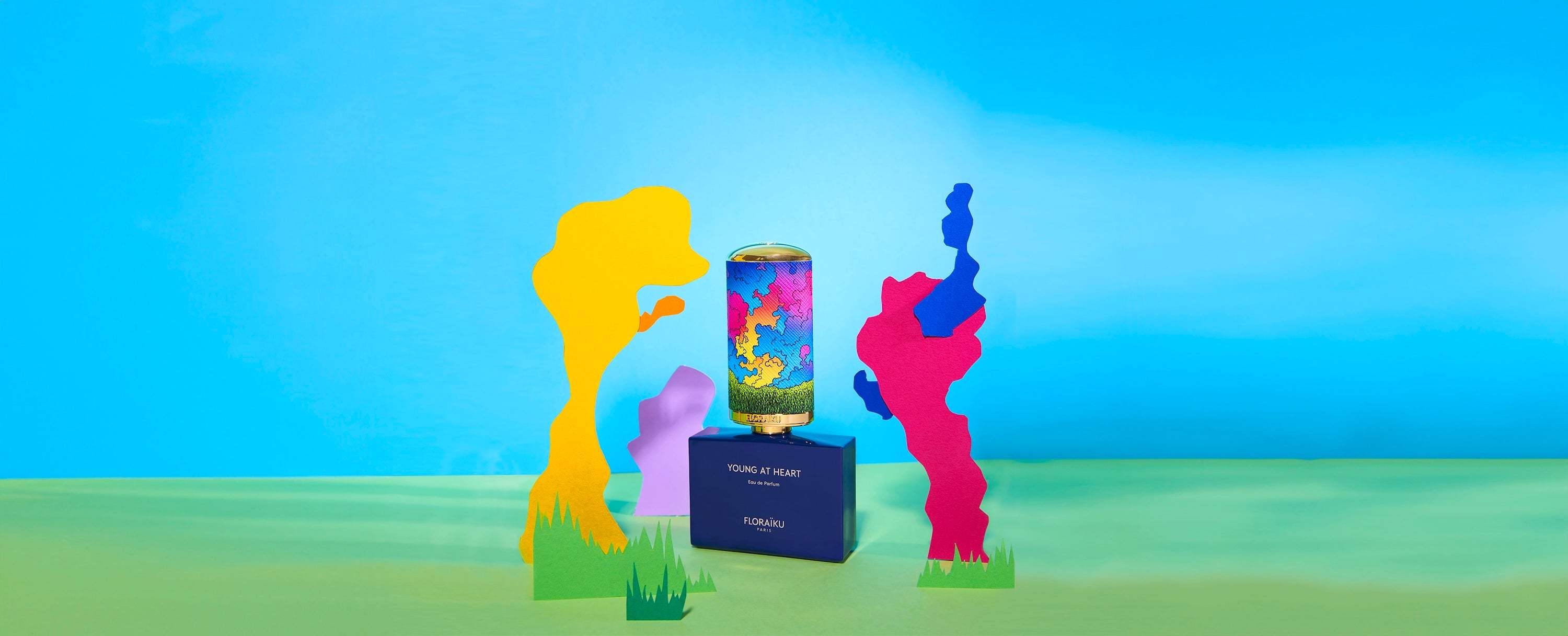 What is youth? Maybe lightness. The haiku is an ode to the ability to keep a child soul, a blossoming spirit. Being always curious, never satiated, looking to the world with an open and creative mind. For each day a new occasion of love! To evoke this carefree momentum, the case had to be colorful, playing with the magic of nature. The rainbow colours are revisited into swirls, the fresh side of the composition is present with the grassland. And guess what? Young at Heart is the title of a song performed by Franck Sinatra. This perfume will croon you away.